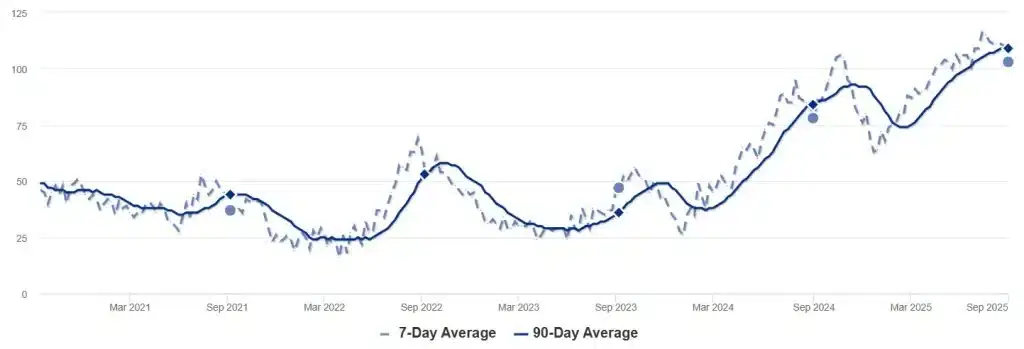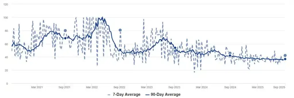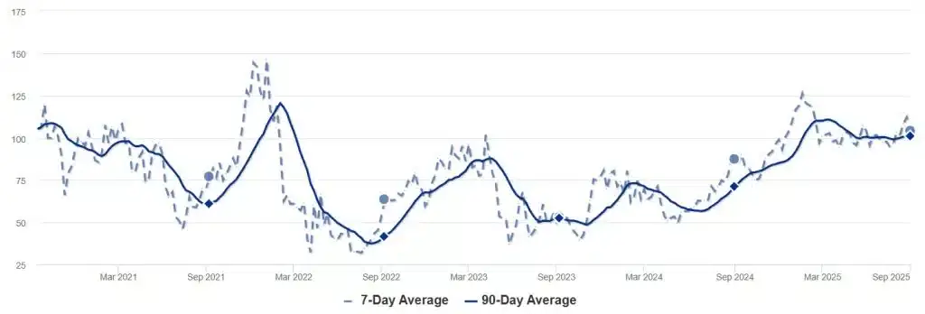 The MAI at 37 shows the market continues to lean toward sellers, though the advantage is relatively mild. Buyers have more opportunities to negotiate, especially on properties that remain on the market longer. Sellers still maintain leverage thanks to relatively low inventory