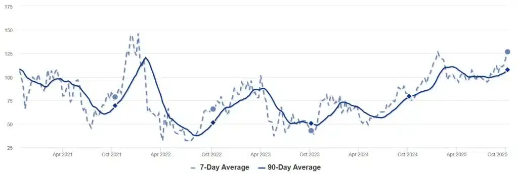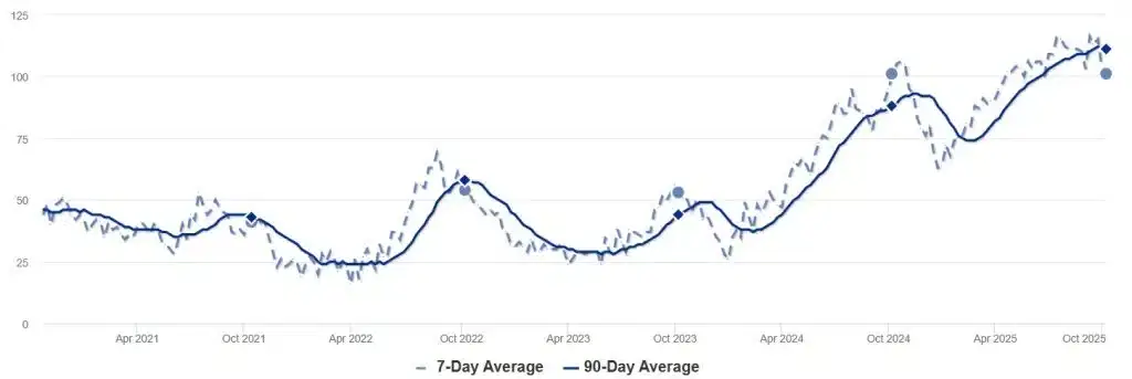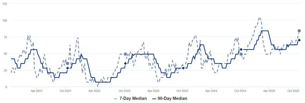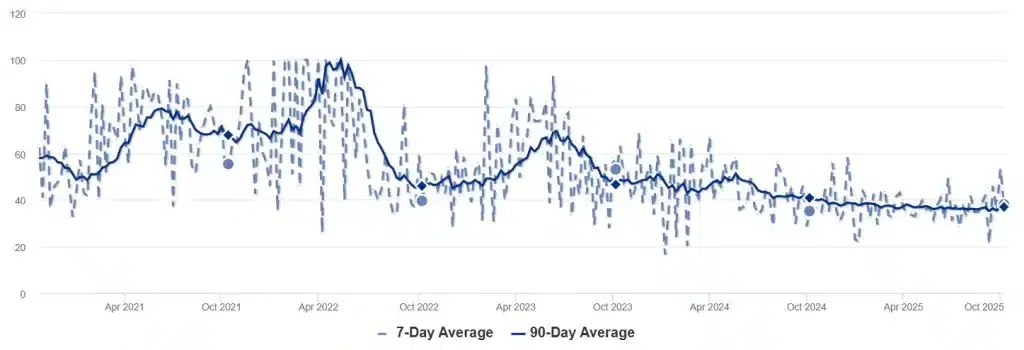 The MAI at 37 shows the market continues to lean toward sellers, though the advantage is relatively mild. Buyers have more opportunities to negotiate, especially on properties that remain on the market longer. Sellers still maintain leverage thanks to relatively low inventory levels compared to demand.