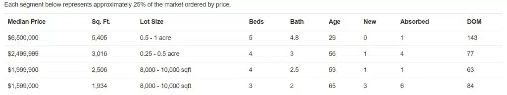 Breaking the market into quartiles provides a clear picture of activity across price ranges: