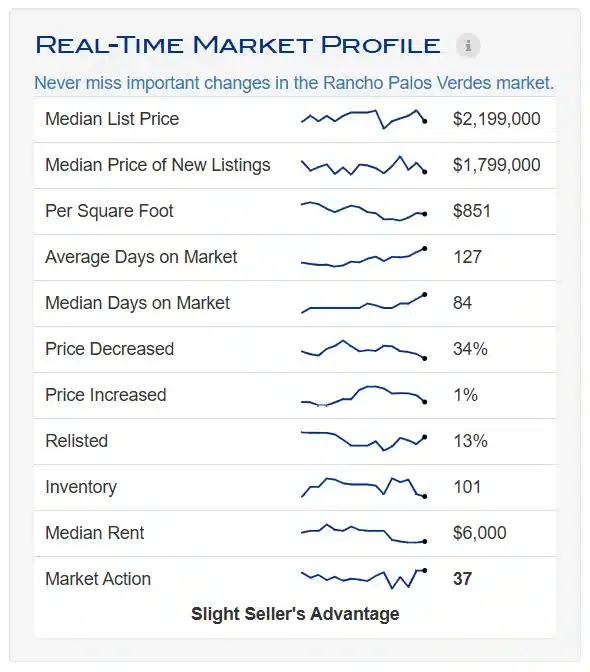 Rancho Palos Verdes remains in a slight seller’s advantage, but the story is more nuanced: longer days on market, high price reductions, and competitive new listing pricing show that buyers still have influence. Sellers who adapt with smart pricing and strong presentation will continue to attract offers, while buyers will find the most opportunity in homes lingering past the 60-day mark.